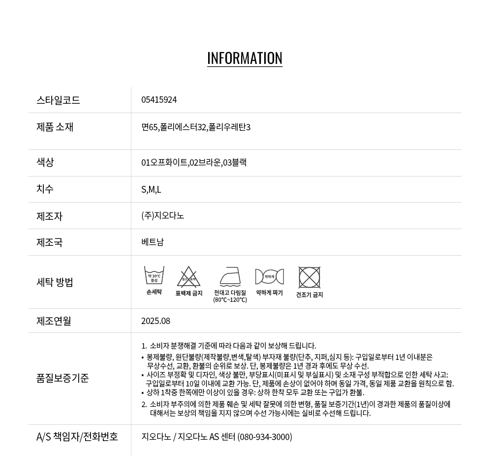 • 교환 진행시 배송비 5,000원 주문자 성함으로 입금 부탁드립니다(신한은행:267-05-028523 (주)지오다노)