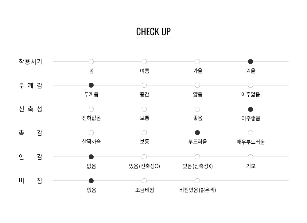 부드럽고 두께감이 있어 간절기 시즌부터 겨울시즌까지 활용도 높은 아이템입니다.