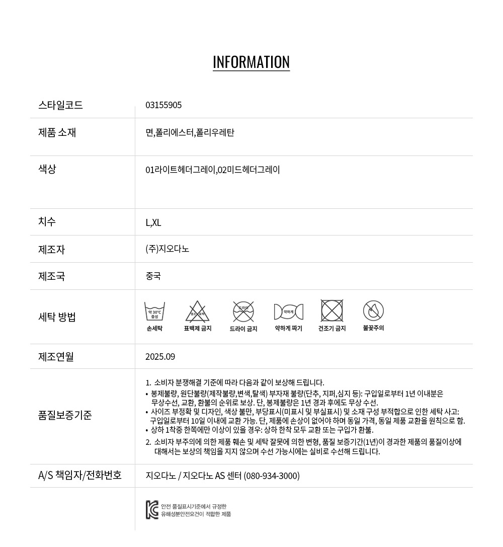 • 교환 진행시 배송비 5,000원 주문자 성함으로 입금 부탁드립니다(신한은행:267-05-028523 (주)지오다노)