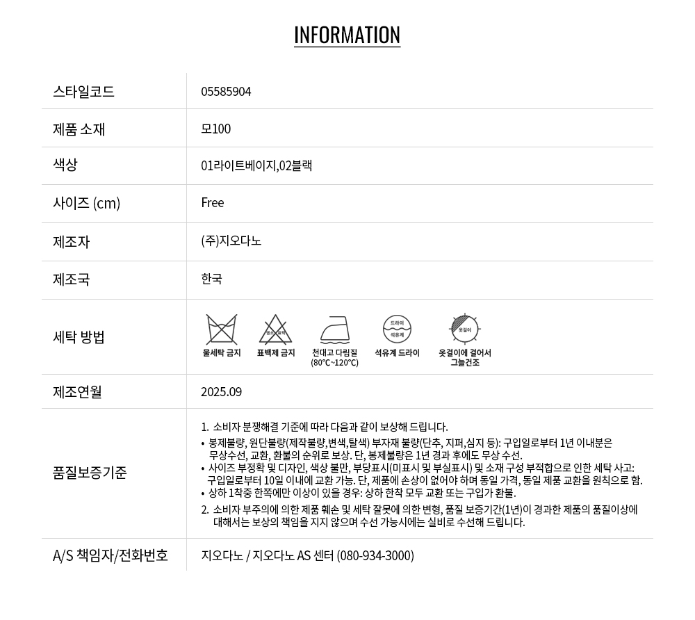 • 교환 진행시 배송비 5,000원 주문자 성함으로 입금 부탁드립니다(신한은행:267-05-028523 (주)지오다노)