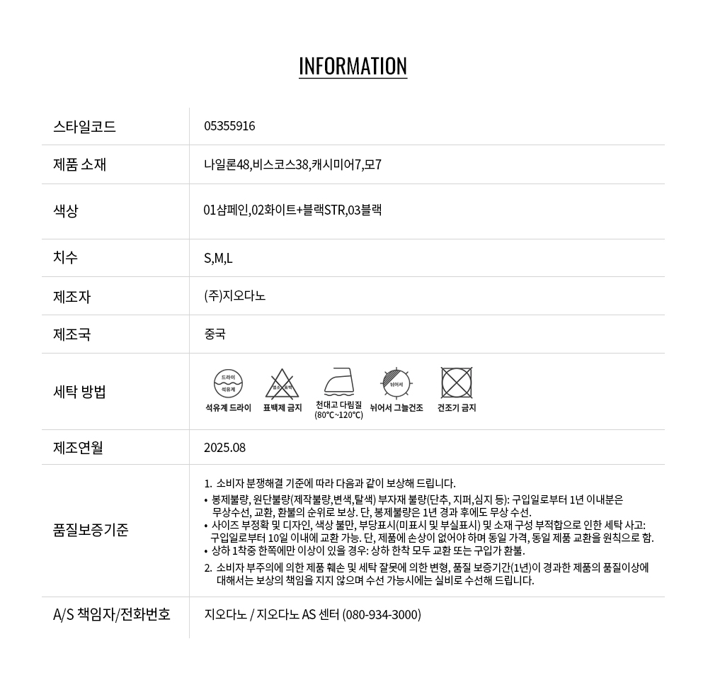 - 교환 진행시 배송비 5,000원 주문자 성함으로 입금 부탁드립니다(신한은행:267-05-028523 (주)지오다노)