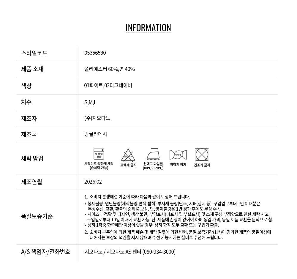 • 교환 진행시 배송비 5,000원 주문자 성함으로 입금 부탁드립니다(신한은행:267-05-028523 (주)지오다노)
