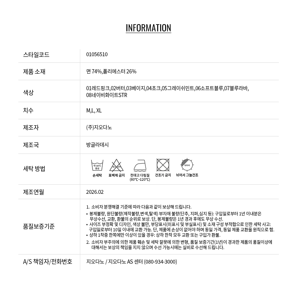 • 교환 진행시 배송비 5,000원 주문자 성함으로 입금 부탁드립니다(신한은행:267-05-028523 (주)지오다노)