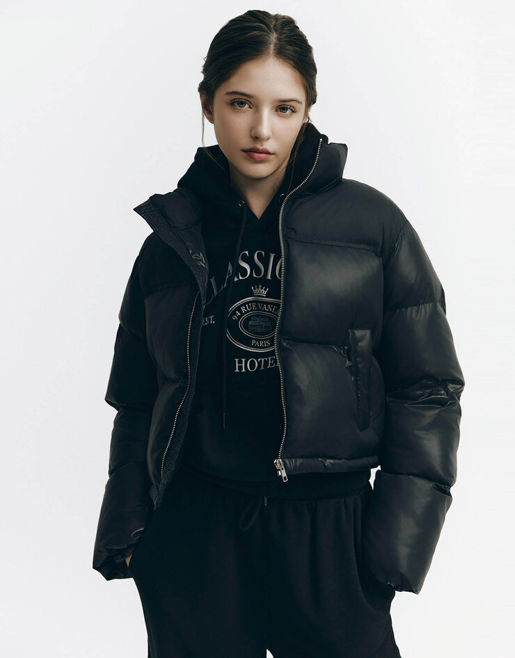 트렌디한 핏감의 경쾌함이 느껴지는 짧은 숏 푸퍼로 입체적인 패턴을 적용하여 더욱더 편안한 핏 감을 선사합니다