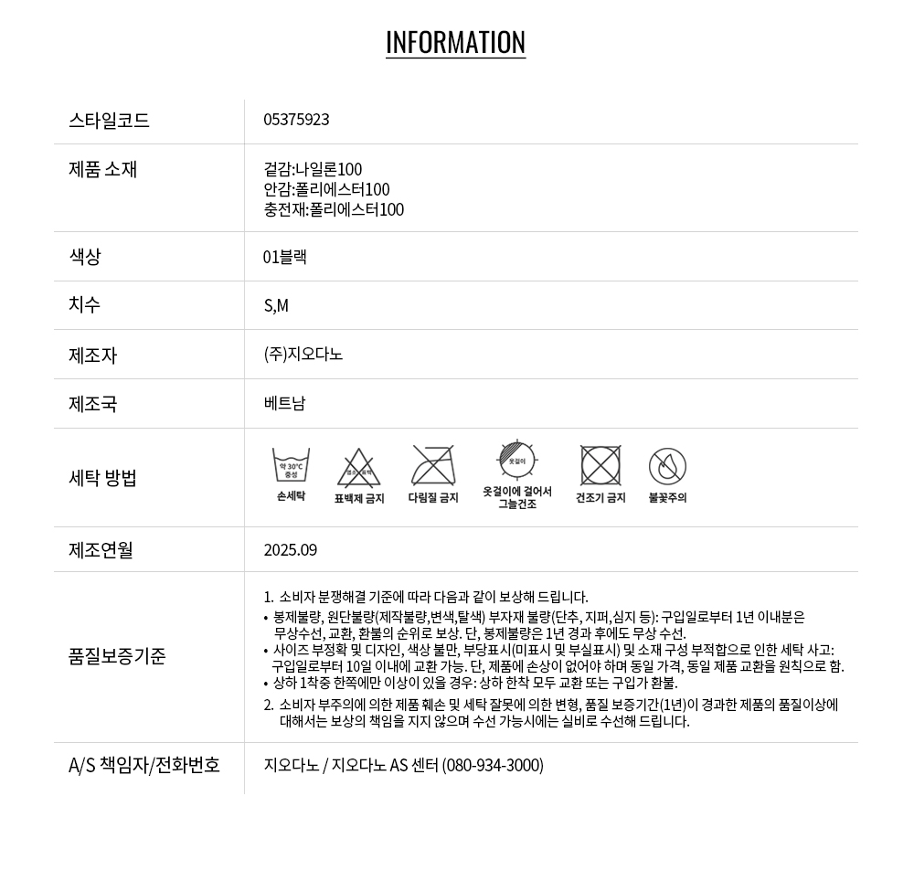 • 교환 진행시 배송비 5,000원 주문자 성함으로 입금 부탁드립니다(신한은행:267-05-028523 (주)지오다노)