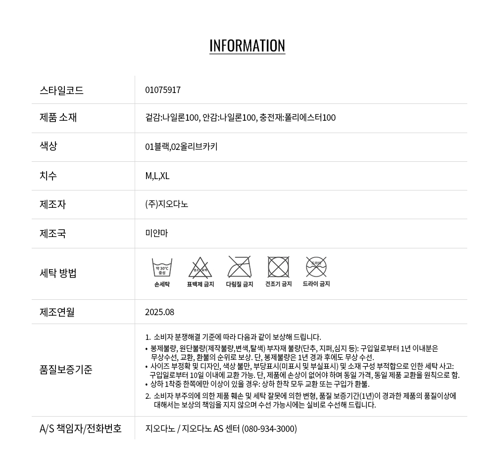 - 교환 진행시 배송비 5,000원 주문자 성함으로 입금 부탁드립니다(신한은행:267-05-028523 (주)지오다노)