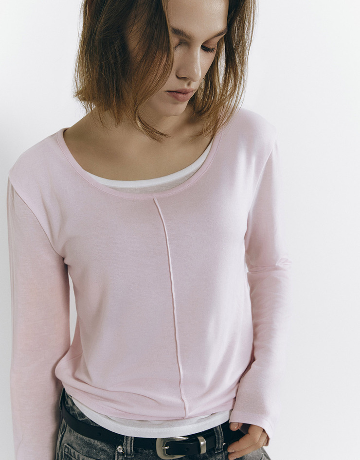 여자 시어 더블 레이어드 긴팔 티셔츠