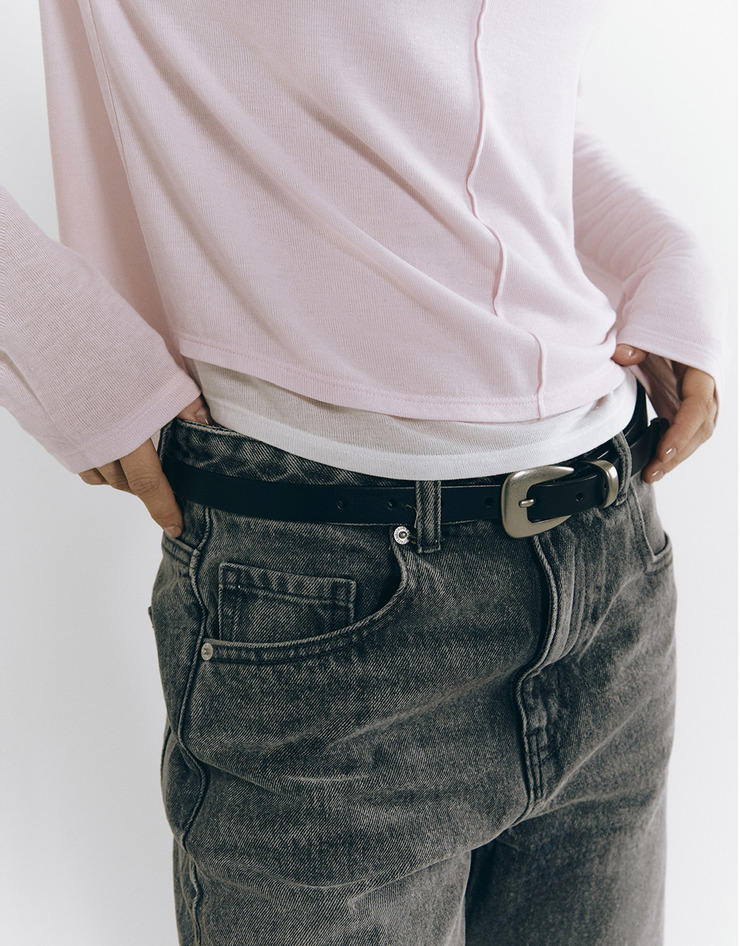 NEW 여자 립 스쿱넥 긴팔 티셔츠