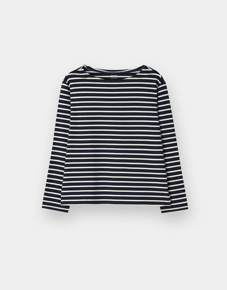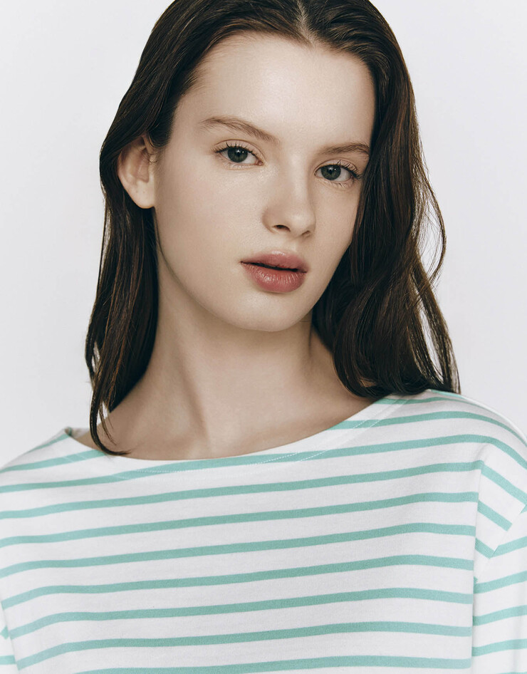 여자 스트라이프 보트넥 긴팔 티셔츠