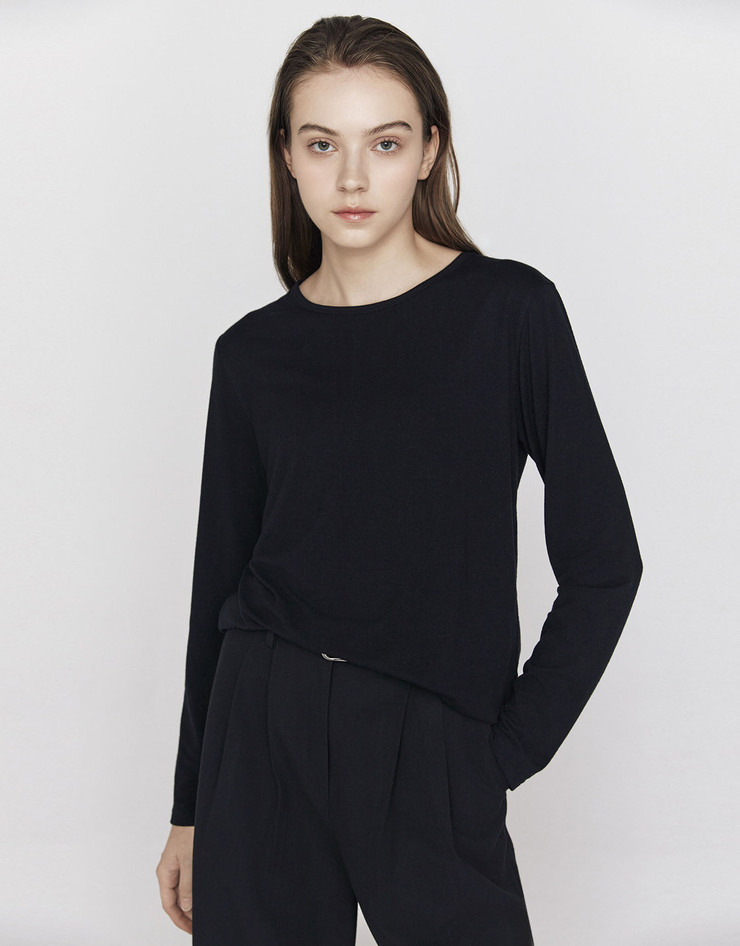 여자 베이직 라운드넥 긴팔 티셔츠
