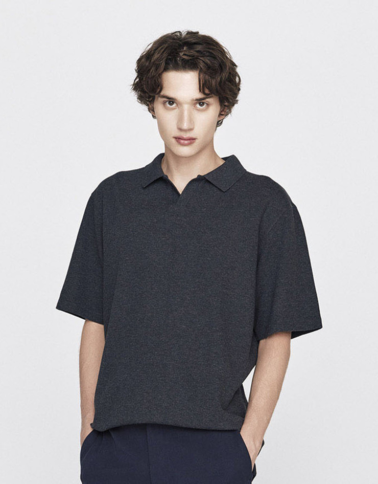 인터락 슬릿넥 반팔 티셔츠