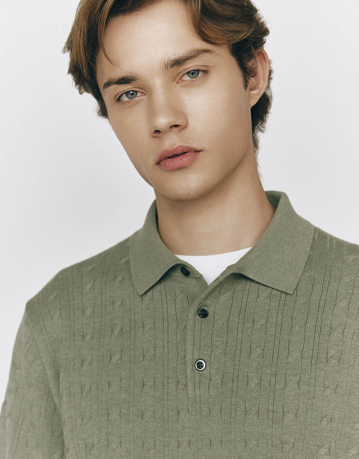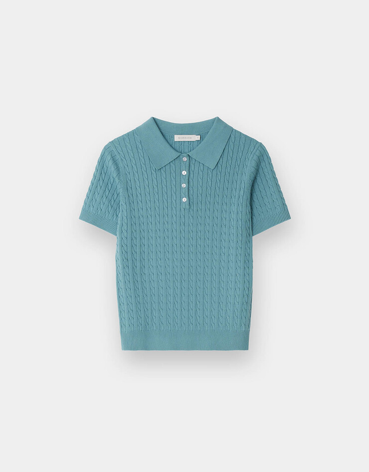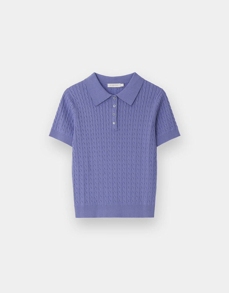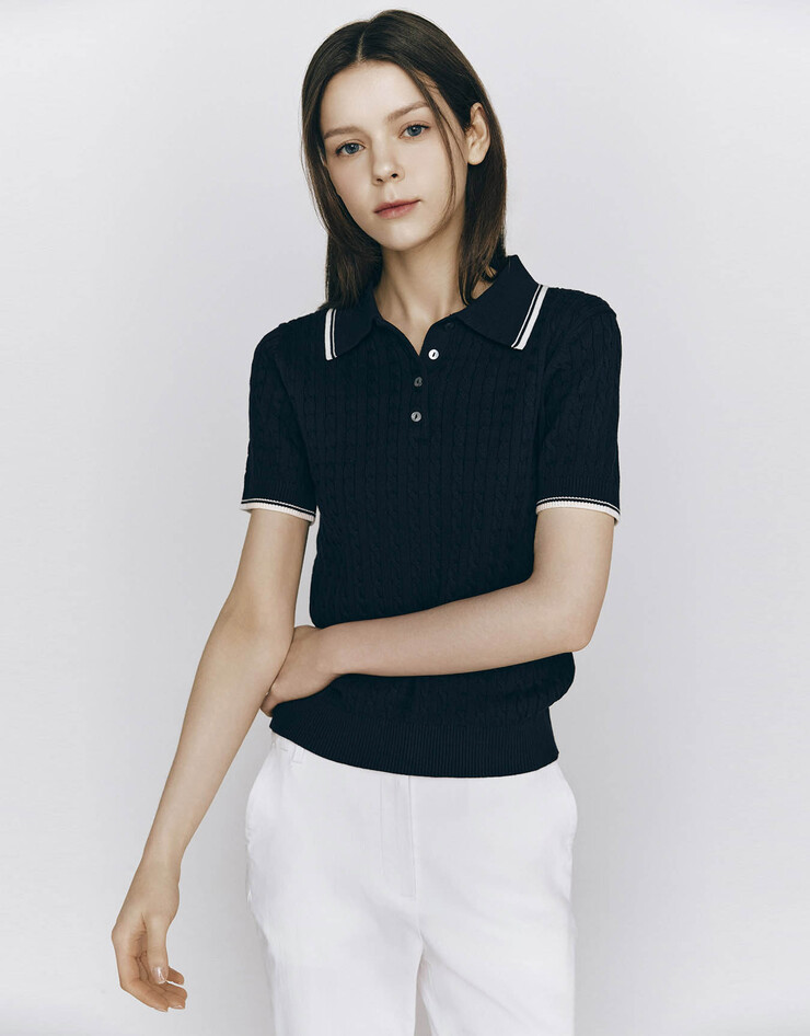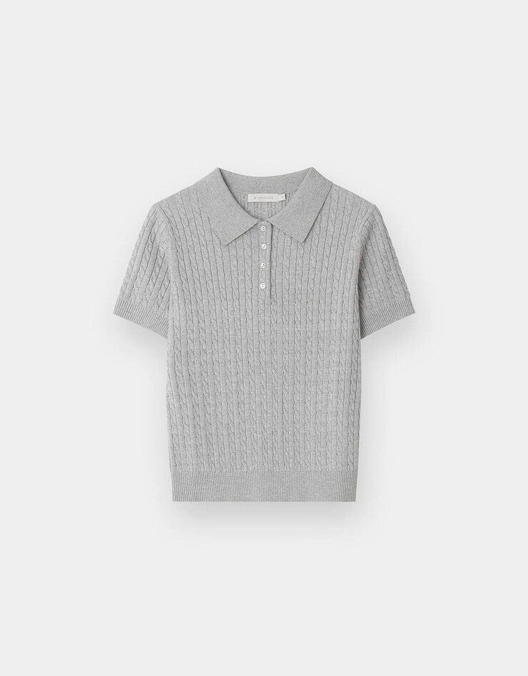 케이블 폴로넥 반팔 니트 스웨터