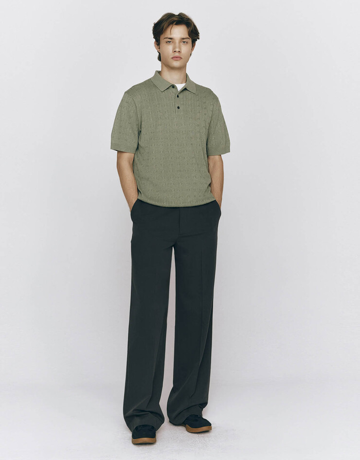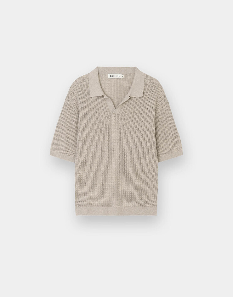 남자 립 스티치 폴로넥 반팔 니트 스웨터 12GG