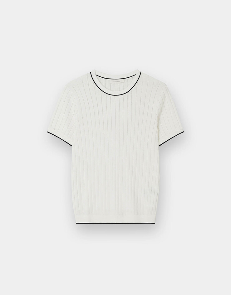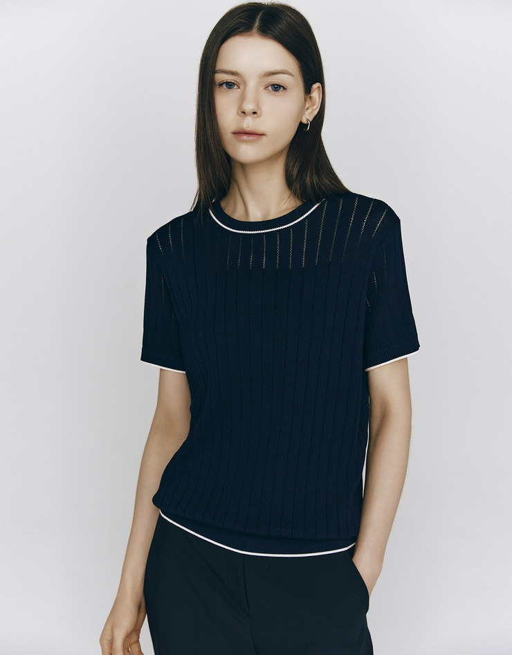 스티치 라운드넥 반팔 니트 스웨터