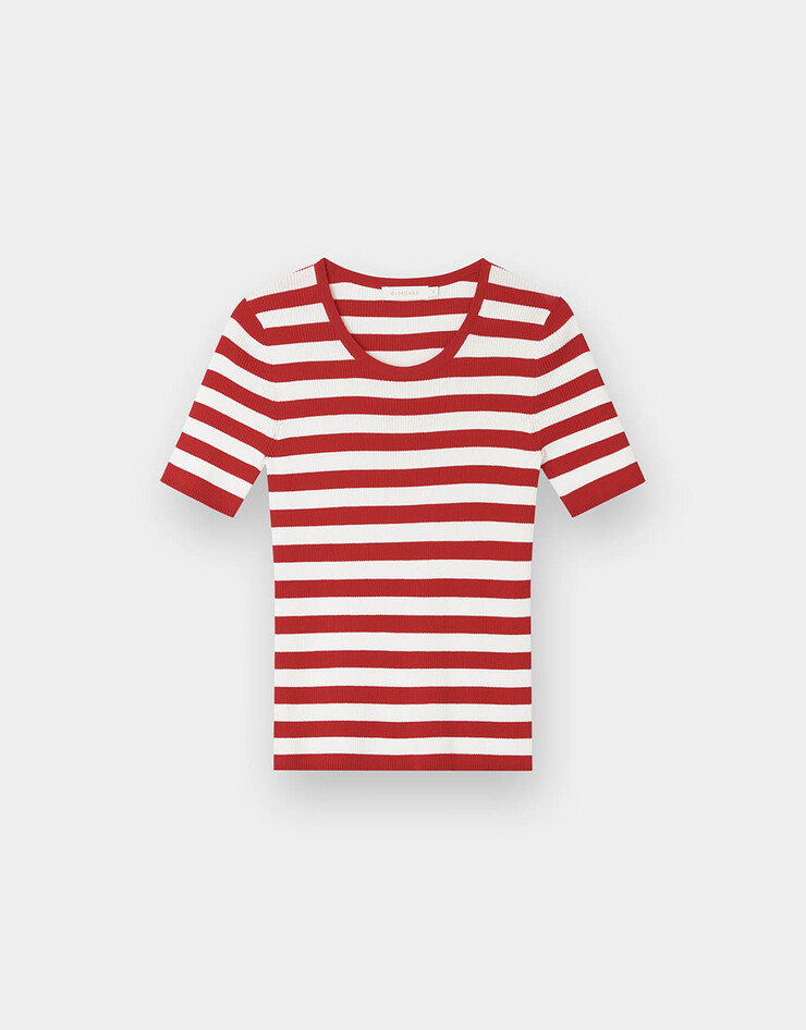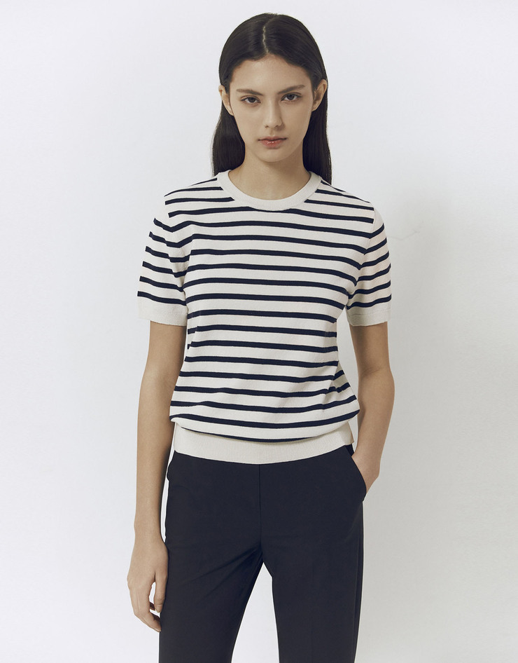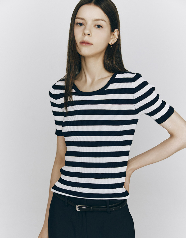 NEW 스트라이프 반팔 니트 스웨터