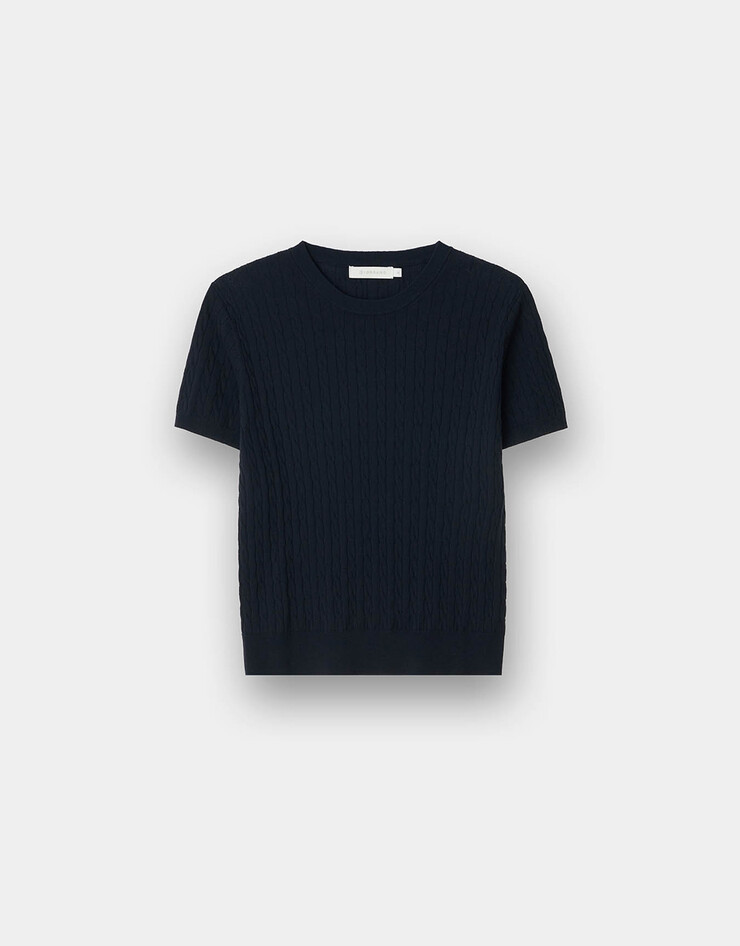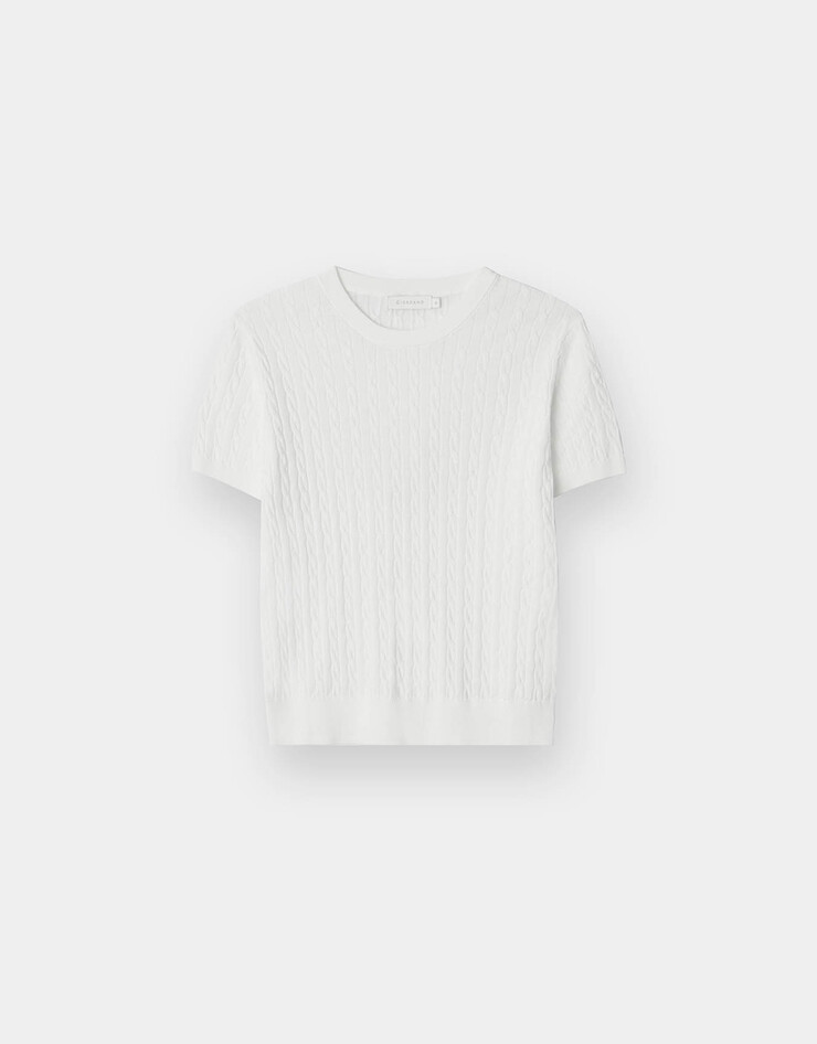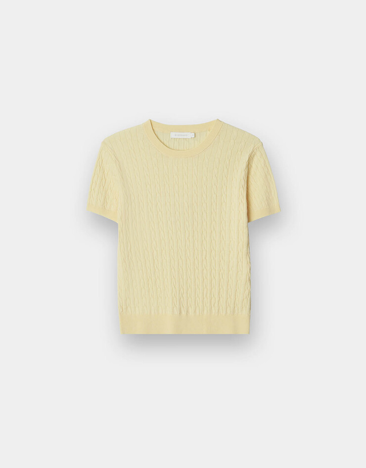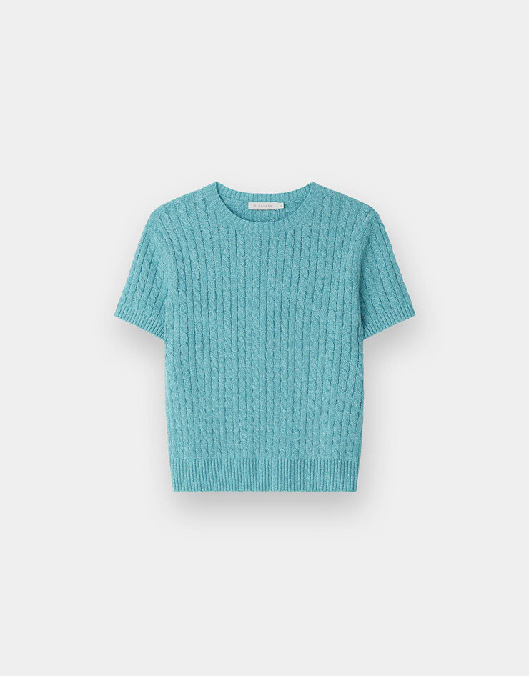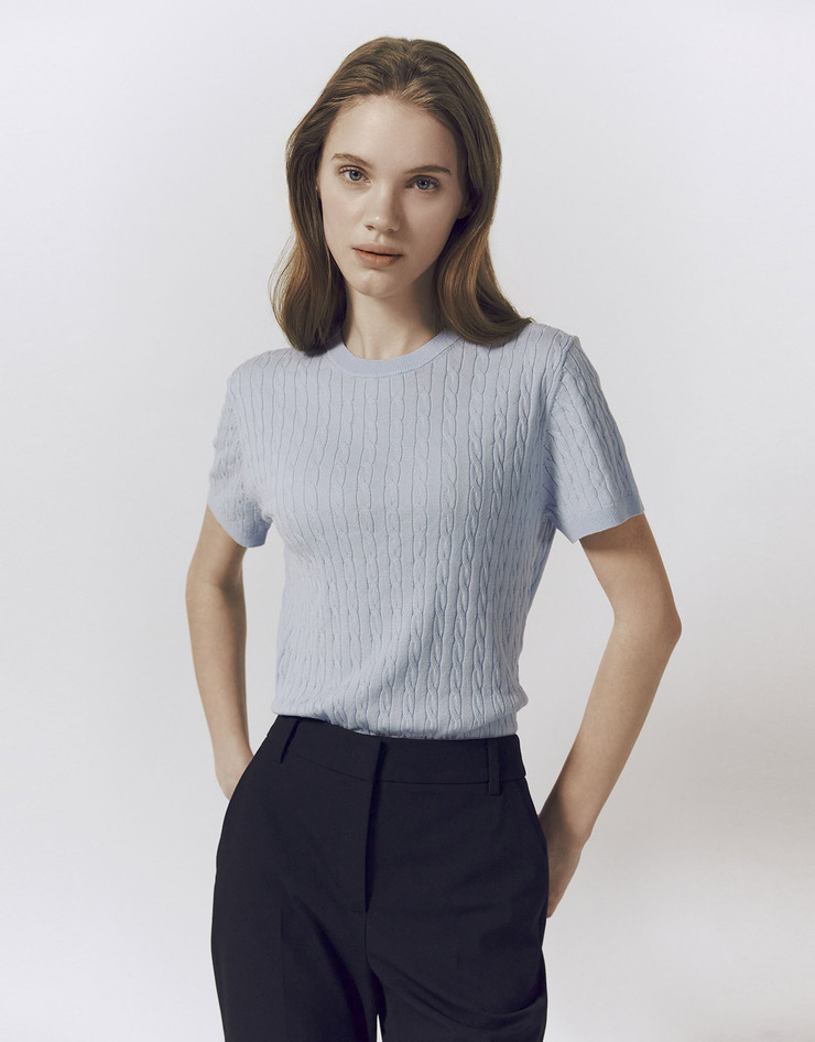 케이블 슬릿넥 반팔 니트 스웨터