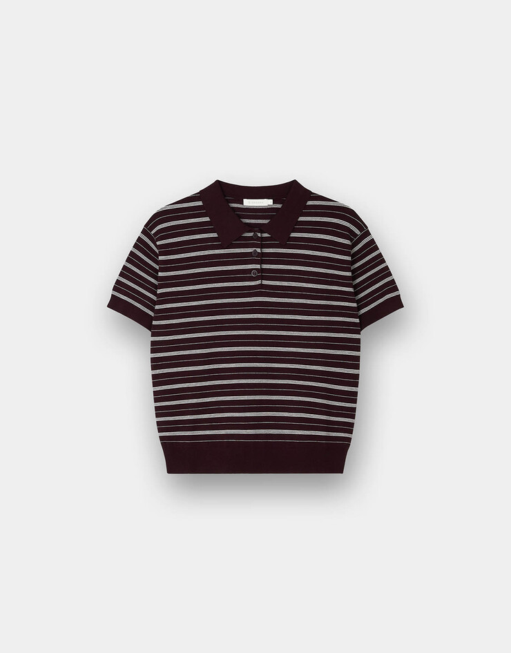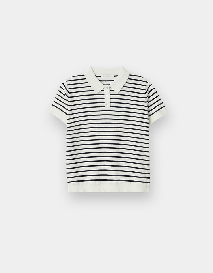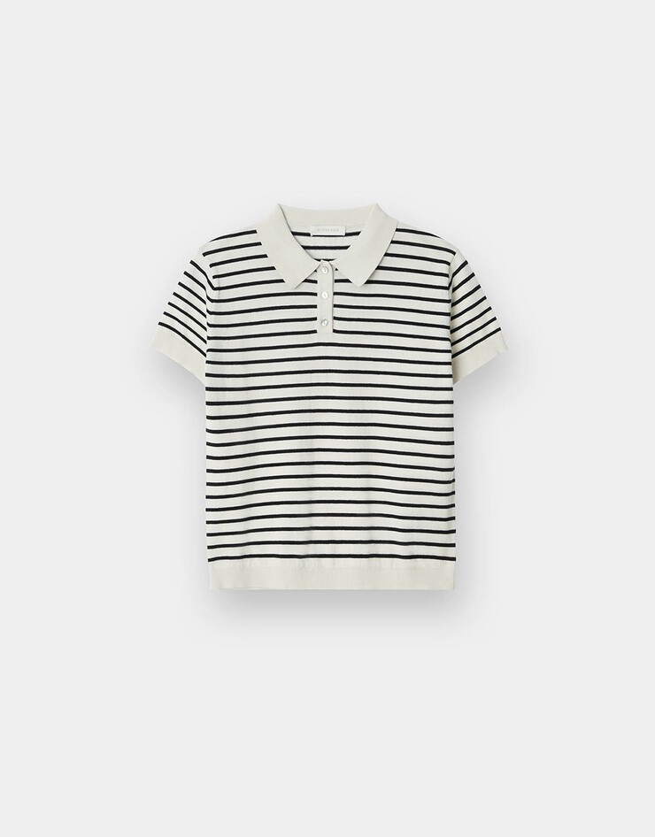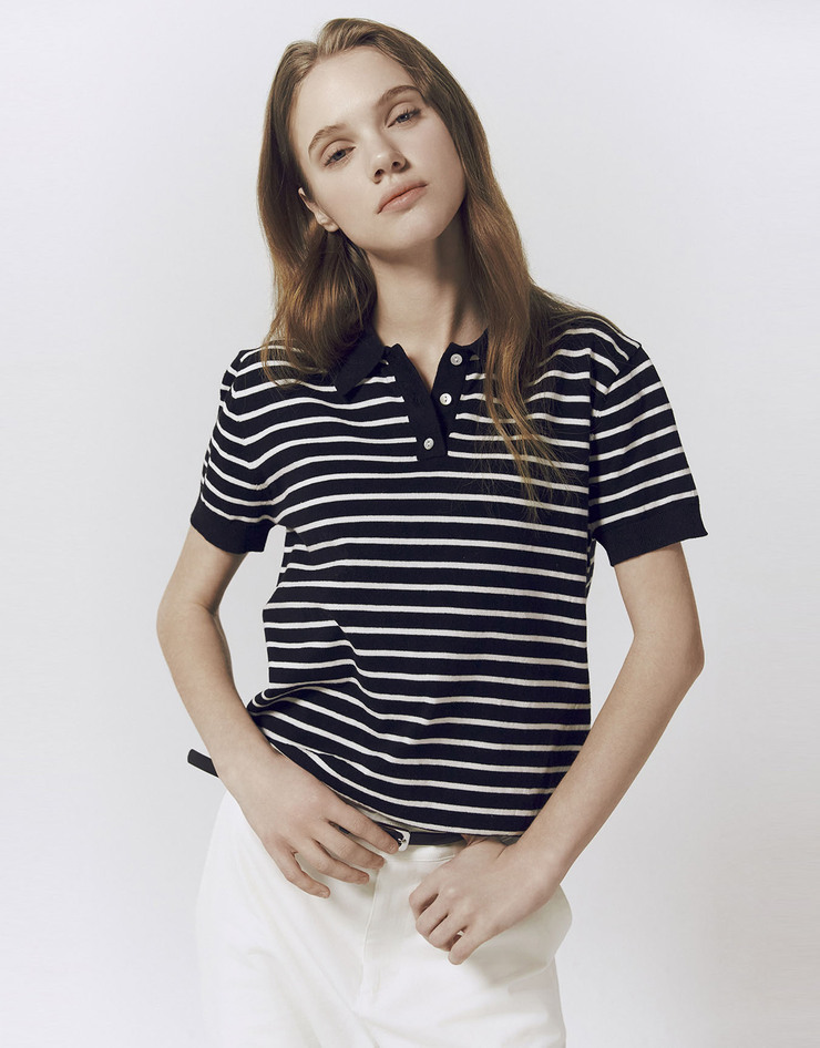 NEW 스트라이프 폴로넥 반팔 니트 스웨터