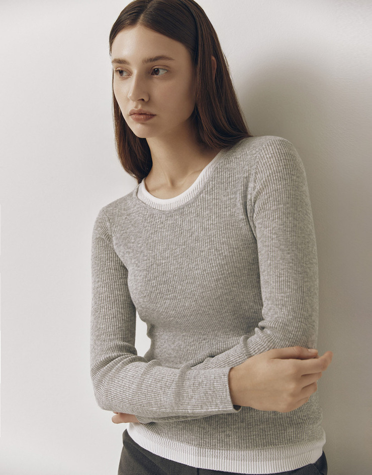 NEW [테일러드] 여자 레이어드 립 긴팔 니트 스웨터 14GG