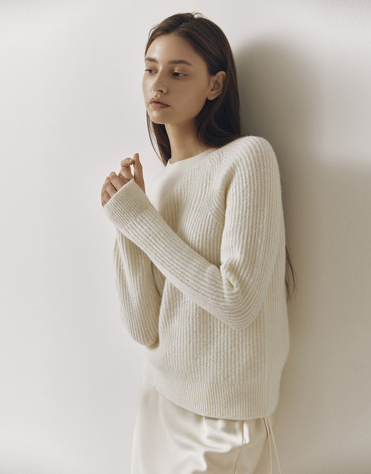NEW [테일러드] 여자 립 래글런 크루넥 긴팔 니트 스웨터 5GG