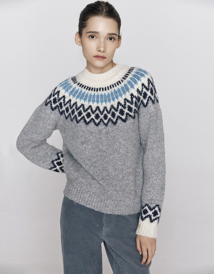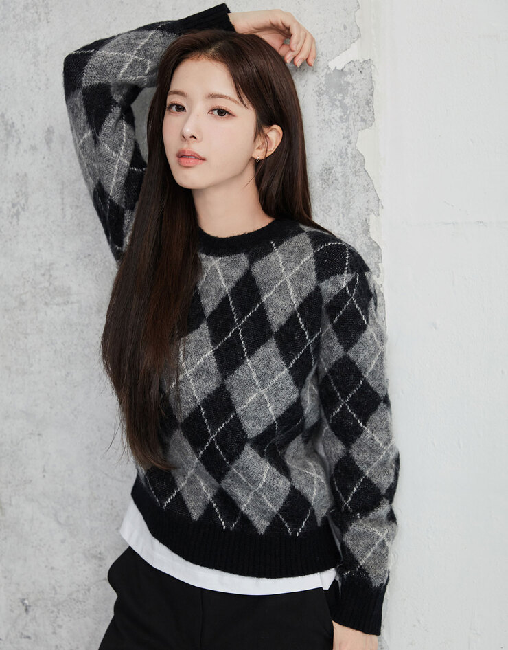NEW [노정의] 여자 아가일 크루넥 긴팔 니트 스웨터 7GG